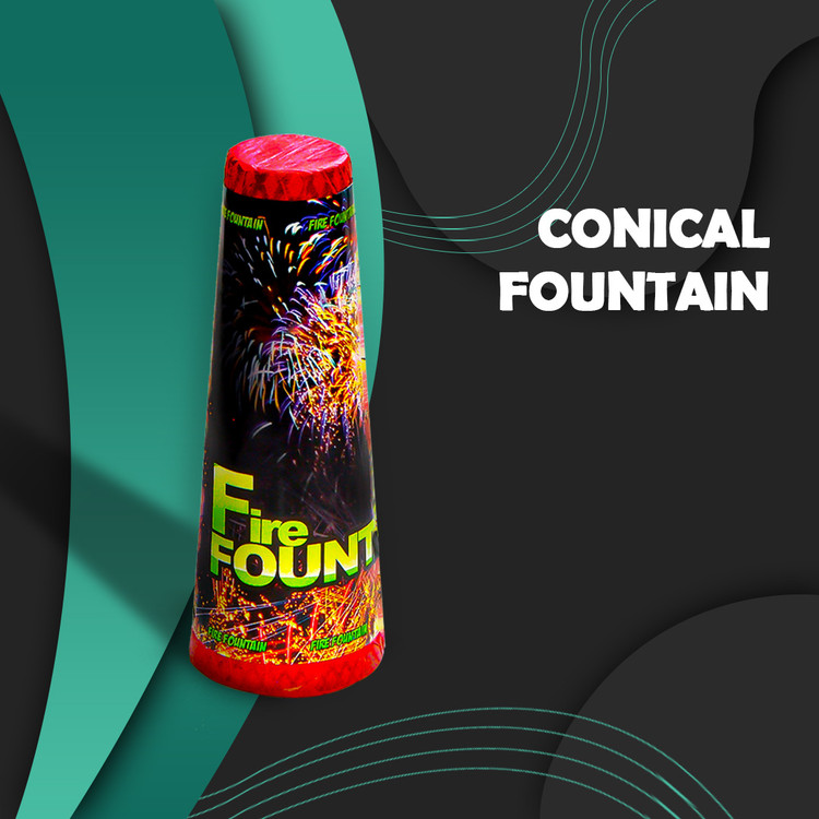 - اگر به دنبال یک تجربه متفاوت و خاص از نورافشانی هستید، آبشار مخروطی (Conical Fountain) یک انتخاب عالی برای شماست. این محصول با زمان اجرای ۳۵ ثانیه و طراحی خاص به شکل مخروط، جلوهای متفاوت و جذاب را برای هر مراسم و جشنی به ارمغان میآورد.